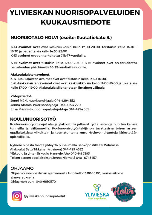 nuorisonohjaaja, Nuorisotalo Holvi, puh 044 4294352