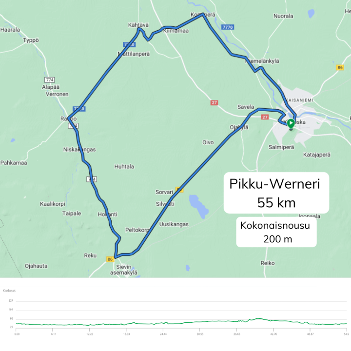 Vaihtoehtoisesti Sievintie –> Joonaalan metsätie n. 4,2km. Tämä mun mielestä parempi. Ja sit tuo että liikuntakeskus – huhmari hiitoladun varrella.